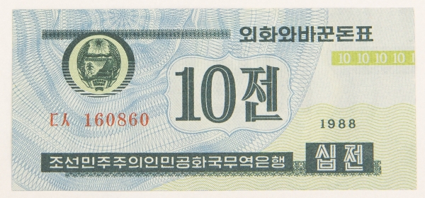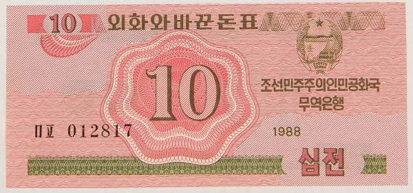 • Numismática, KOREA. Uma Cédula 10 Won 1988 Flor de Estampa