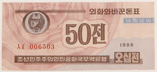 • Numismática, KOREA. Uma Cédula 50 Won 1988 Flor de Estampa