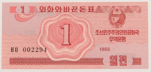 • Numismática, KOREA. Uma Cédula P-023 1 Won 1988 Flor de Estampa
