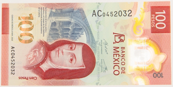 • Numismática, MEXICO. Uma Cédula 100 Pesos Polímero Flor de Estampa