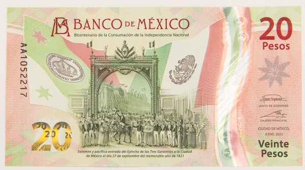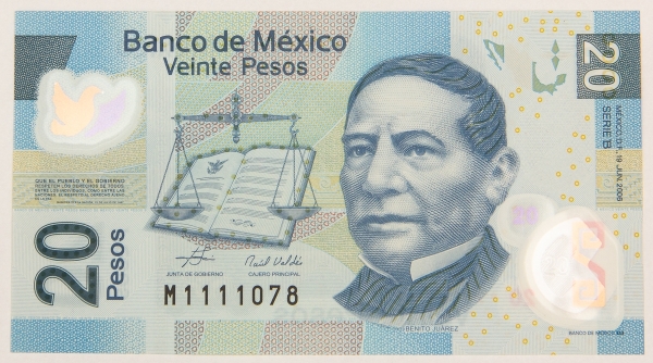 • Numismática, MEXICO. Uma Cédula 20 Pesos Flor de Estampa