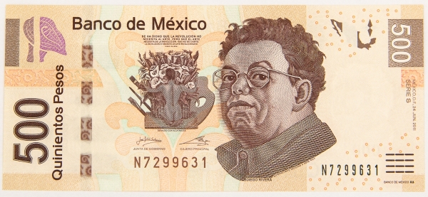 • Numismática, MEXICO. Uma Cédula 500 Pesos Flor de Estampa