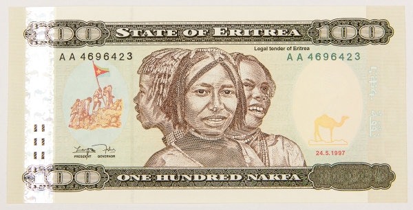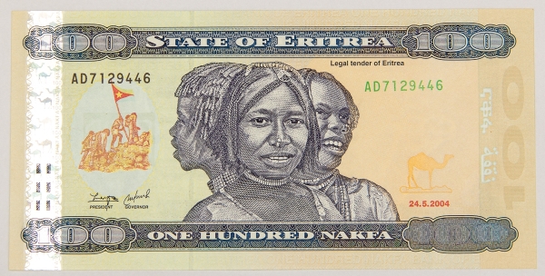 • Numismática, ERITREA. Uma Cédula 100 Nakfa Flor de Estampa