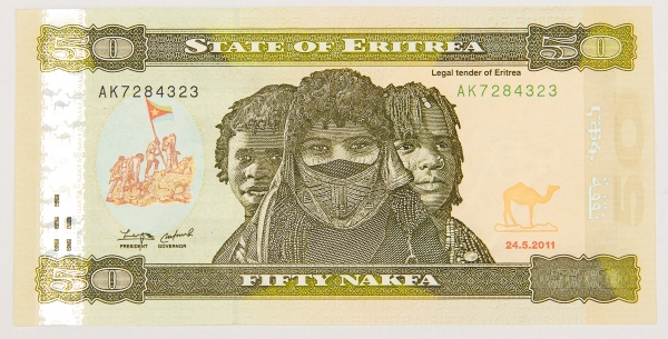 • Numismática, ERITREA. Uma Cédula 50 Nakfa Flor de Estampa
