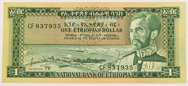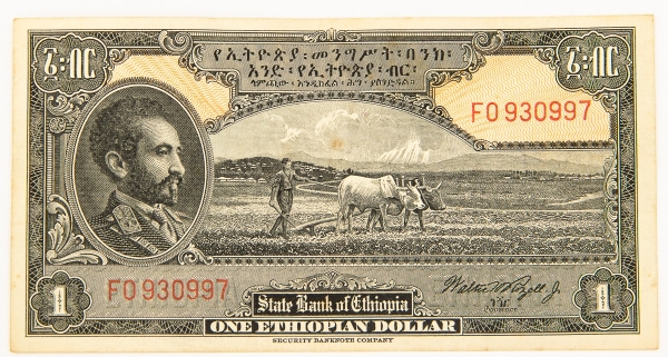 • Numismática, ETHIOPIA. Uma Cédula 1 Dollar