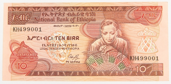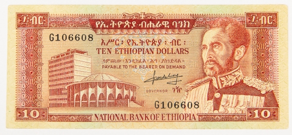 • Numismática, ETHIOPIA. Uma Cédula 10 Dollars Flor de Estampa