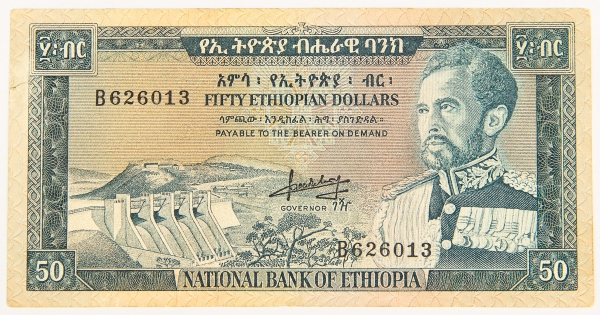 • Numismática, ETHIOPIA. Uma Cédula 50 Dollars