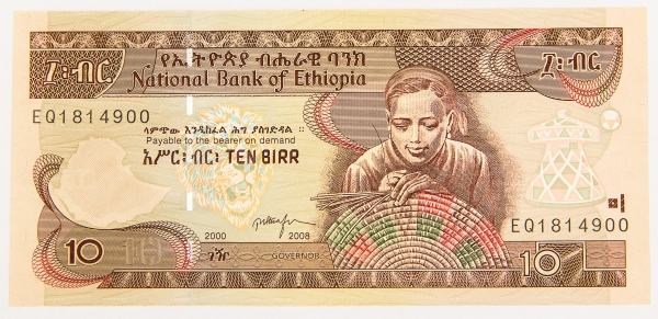 • Numismática, ETHIOPIA. Uma Cédula 10 Birr Flor de Estampa
