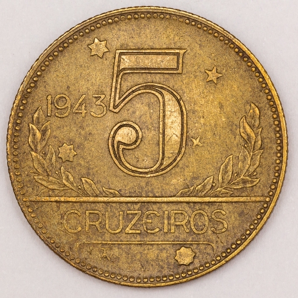 • Numismática, Brasil. 5 Cruzeiros 1943. Perfeita.