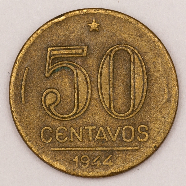 • Numismática, Brasil. 50 Centavos 1944. Sem Sigla.