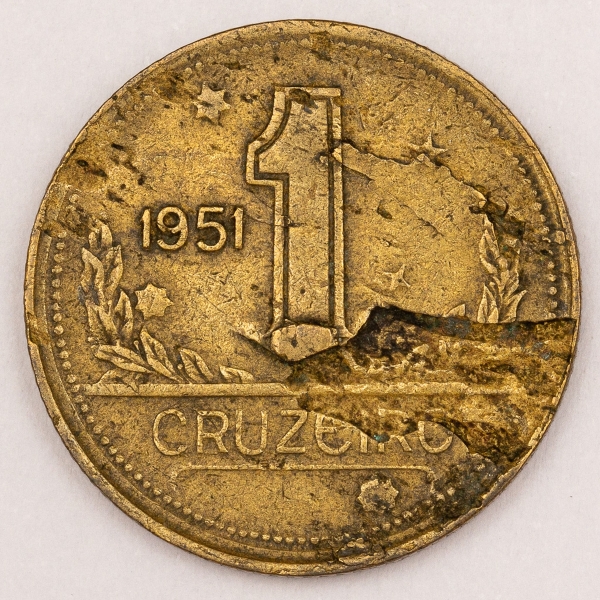 • Numismática, Brasil. 1 Cruzeiro 1951. Cunho rachado.
