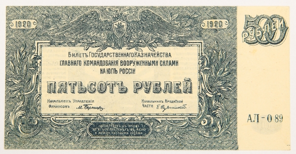 • Numismática, Rússia. Cédula de 500 Rublos 1920 S-434 FE