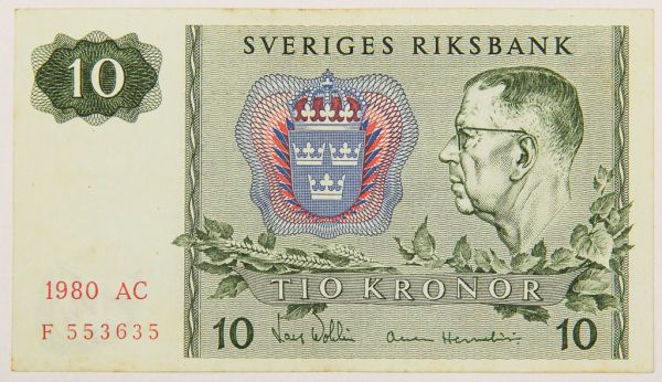 • Numismática, SWEDEN. Uma Cédula 10 Kroner 1980