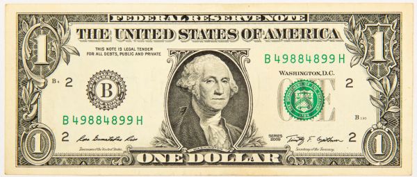 • Numismática, EUA. Cédula de 1 Dólar Americano 2009 New York.
