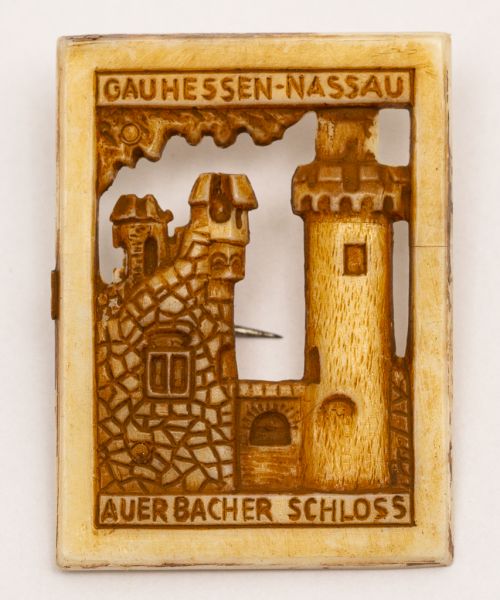 • Militaria, Alemanha II Guerra. Proveniente de importante coleção adquirida na Bélgica - Feira de Militaria de Ciney. O partido nazista promoveu uma grande campanha de arrecadação de fundos antes e durante a guerra, com a venda de itens colecionáveis, pins, pendentes, tinnies, badges etc. Sempre colecionáveis voltada a novas compras. Oportunidade para colecionador avançado. **Item não promove ou glorifica violência ou intolerância racial. Está à venda apenas para fins de preservação da memória histórica. A Organização do leilão não faz apologia a quaisquer movimentos políticos ou ideológicos, e repudia qualquer ideologia de cunho racista. Castelo de Aerbach. WHW. 27x33 mm.