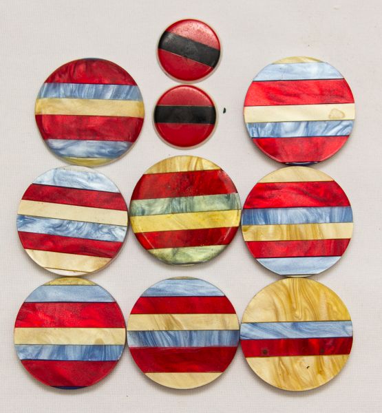 • Colecionismo. 10 botões para futebol de mesa produzidos em galalite e/ou acrílico. Maior diâmetro 5,5 cm. Menor 3,3 cm. 8 maiores e 2 menores. Peças de luxo anos 70/80.