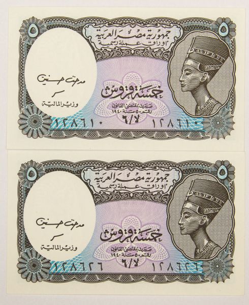 • Numismática, Egito - 2 cédulas de reposição (Replacement) Flor de Estampa