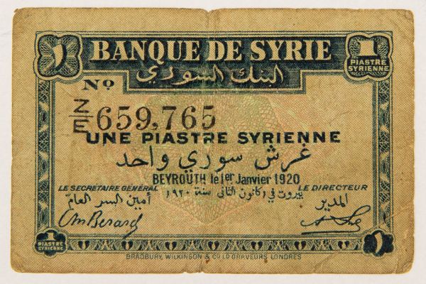 • Numismática, Síria. Cédual de 1 Piastra Síria 1920 P-20