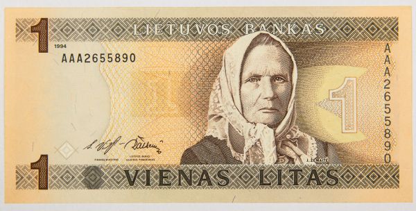 • Numismática, LIETUVA. Uma Cédula 1 Litas 1994 Flor de Estampa