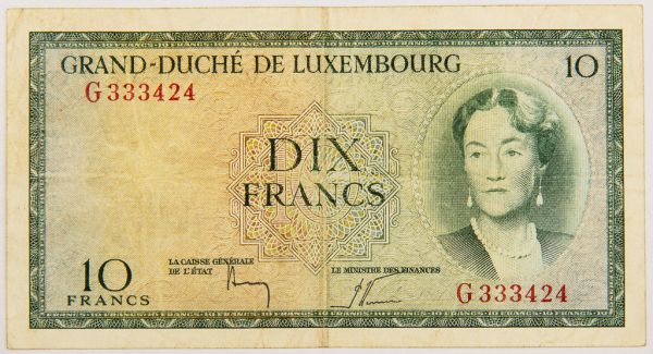 • Numismática, LUXEMBOURG. Uma Cédula 10 Francs