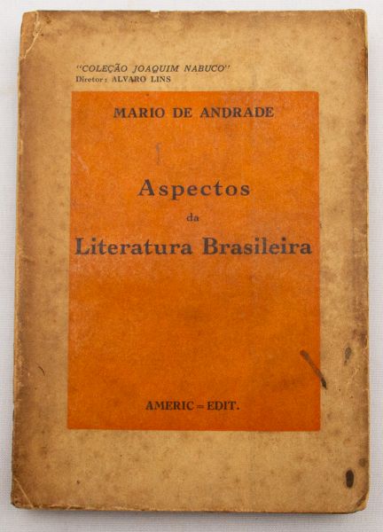 • Livro: ANDRADE, Mário de. `Aspectos da Literatura Brasileira`, 1ª edição. Rio de Janeiro: Ameri-Edit., 1943; 250p. Broch. Desgastes.