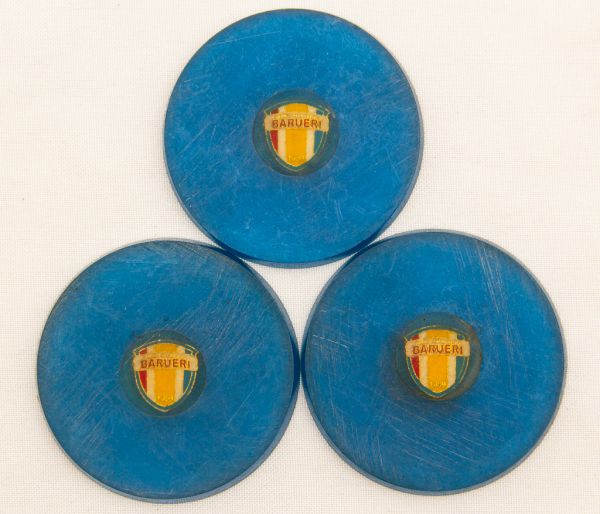 • Colecionismo. Futebol de botão. 3 peças em acrílico e/ou galalite anos 70/80. Barueri (Raridade) 6 cm.