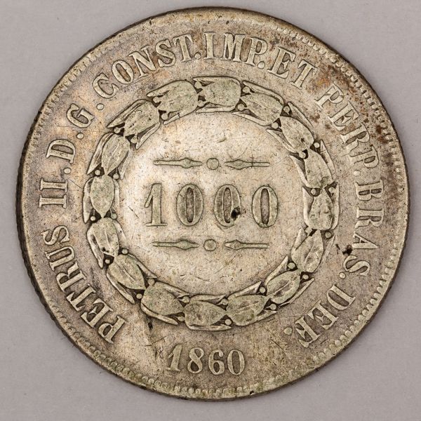 • Numismática, Brasil. 3º Sistema 1000 Reis. Prata. 1860.