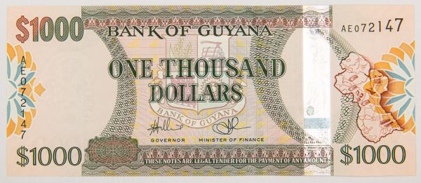 • Numismática, GUYANA. Uma Cédula P-39 1000 Dollars 2011 Flor de Estampa