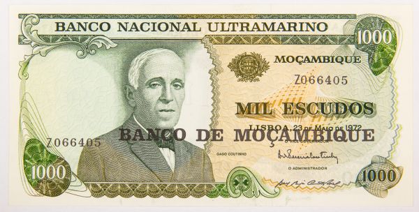 • Numismática, Moçambique - 1000 Escudos 1972 - Letra Z Reposição (Flor de Estampa)