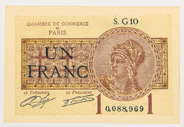 • Numismática, França. Cédula provisional de 1 Franco 1919 - 1922 SOB / FE