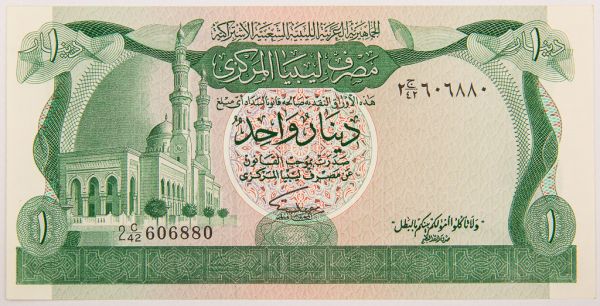 • Numismática, LIBYA. Uma Cédula 1 Dinar Flor de Estampa