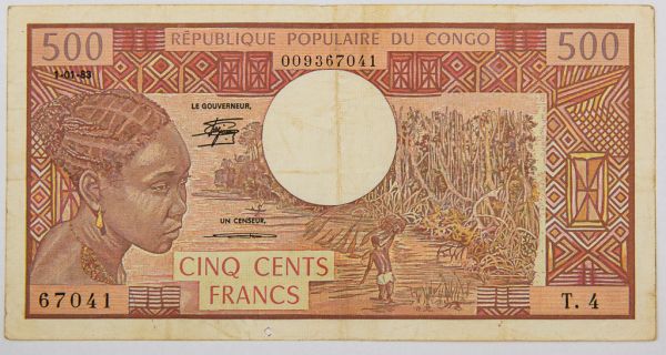 • Numismática, CONGO. Uma Cédula 500 Francs