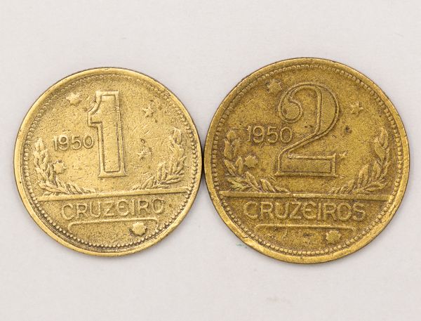 • Numismática, Brasil. Lote com 2 Moedas de 1 e 2 Cruzeiros Ano 1950 - Complete sua coleção - V. 231 e V. 245