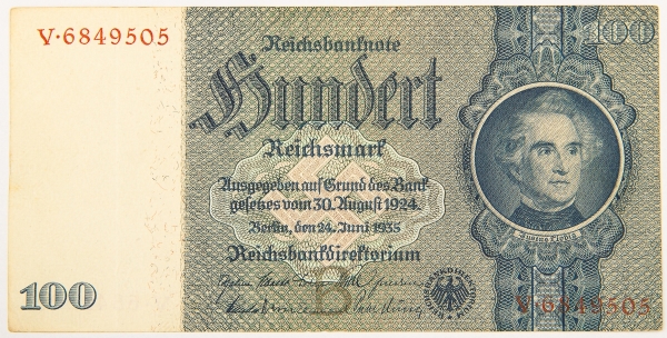 • Numismática, Alemanha. Cédula de 100 Marcos 1935 P-183a