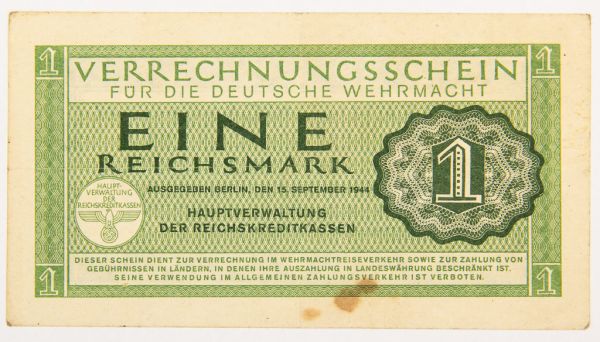 • Numismática, Alemanha 2ª Guerra - 1 Marco 1944 Exército Alemão