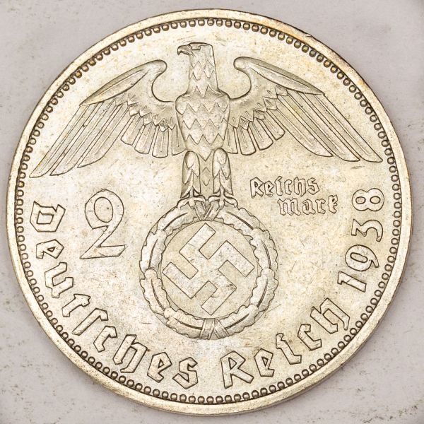 • Numismática, Alemanha. 2 Reichmark 1938 Prata.
