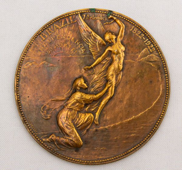 • Colecionismo - Medalha do Brasil - ano 1922 - Exposição Internacional Rio de Janeiro 1922 - 1923 - Independência ou Morte - 75 mm e 123,1 gramas em Bronze