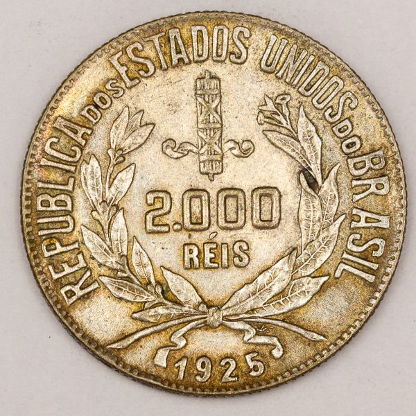 • Numismática, Brasil. 2.000 Réis 1925. Sob/Flor. Prata.
