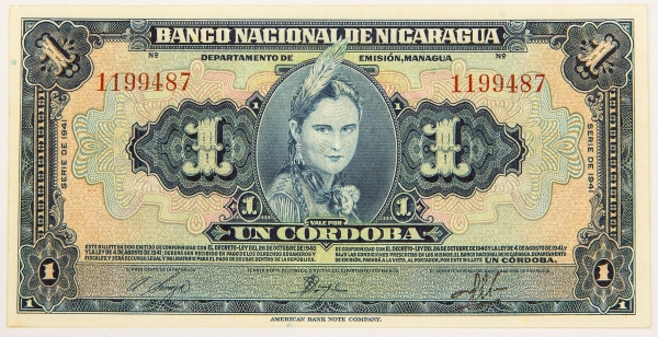 • Numismática, Nicarágua. Cédula de 1 Córdoba 1941 P-90a FE