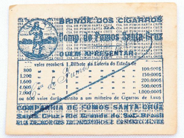 • Colecionismo - Figurinha de Cigarro - BRINDE dos Cigarros da Comp. De Fumos SANTA CRUZ - Rio Grnade do Sul - Brasil