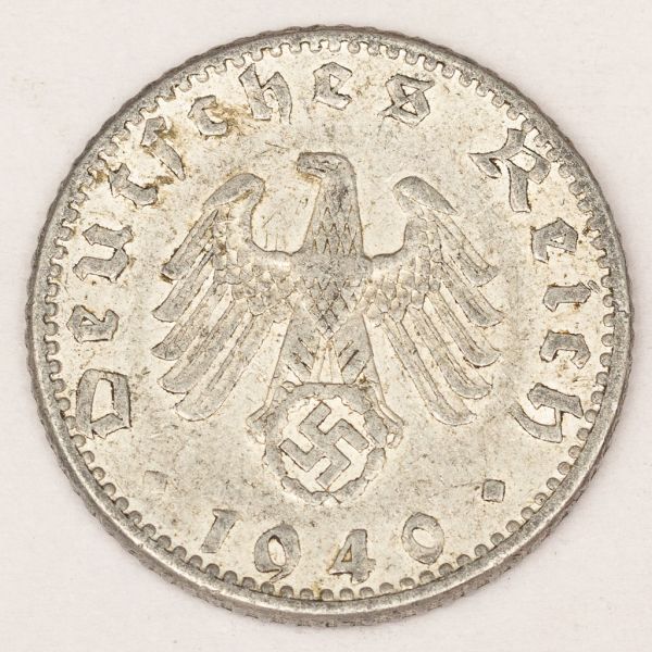 • Numismática Alemanha Período Nazista 50 Reichspfennig Raro no estado oferecido devido a fragilidade do alumínio. **Item não promove ou glorifica violência ou intolerância racial. Está à venda apenas para fins de preservação da memória histórica. A Organização do leilão não faz apologia a quaisquer movimentos políticos ou ideológicos, e repudia qualquer ideologia de cunho racista. 1940A
