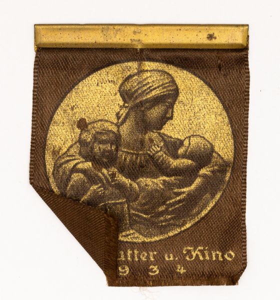 • Militaria, Alemanha II Guerra. Proveniente de importante coleção adquirida em Ciney - Bélgica (Feira gigantesca de Militaria). O partido nazista promoveu uma grande arrecadação de fundos antes e durante a guerra com a venda de grande variedade de itens colecionáveis, pins, pendentes, tinnies, badges etc. Todos colecionáveis para incentivar novas compras. Como referência para estudo e identificação aconselhamos o catálogo Donation Badges, Pins & Pendants of the Third Reich de Joseph Cassidy & Christopher Alexander. Oportunidade para colecionador avançado. *Item não promove ou glorifica violência ou intolerância racial. Está à venda apenas para fins de preservação da memória histórica. A Organização do leilão não faz apologia a quaisquer movimentos políticos ou ideológicos, e repudia qualquer ideologia de cunho racista.  1934 - MUK 34-3 - Mãe e criança. Pág. 280. 55x45 mm. Barra em metal com tecido.