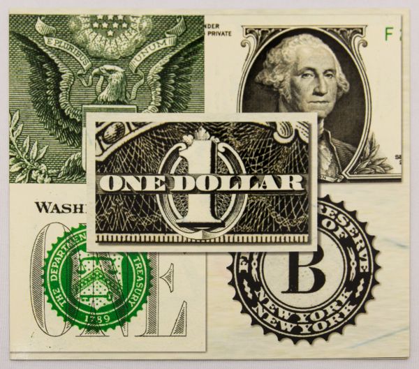 • Numismática, USA Cédula de 1 Dólar em folder impresso no Brasil Cédula de 2013