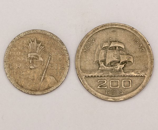 • Numismática, Brasil. 100 e 200 Réis 1932 Vicentinas.