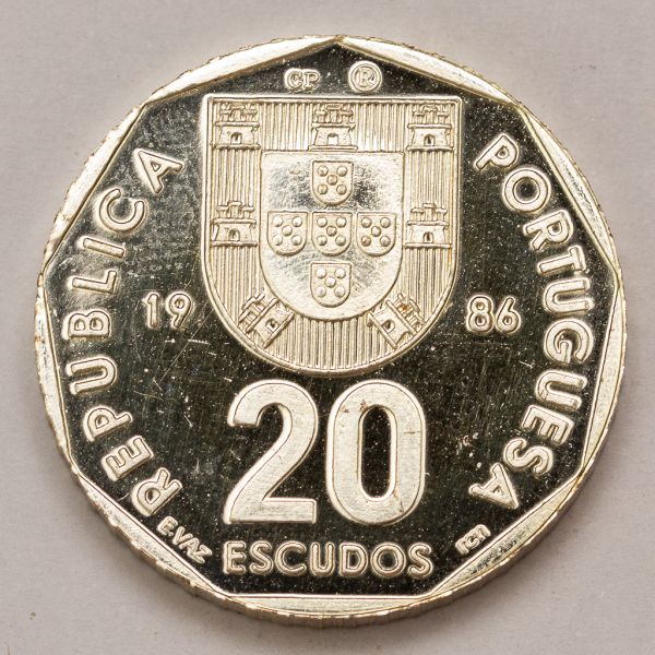 • Numismática, Portugal. 20 Escudos 1986 em Prata 999 contrastada 16g.