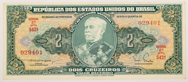 • Numismática, BRASIL. Uma Cédula C-062 Série 542 Nº 029401 1956