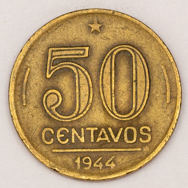 • Numismática, Brasil. 50 Centavos 1944. Sem Sigla.