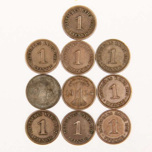 • Numismática, Alemanha. 10 Moedas 1 Pfennig.