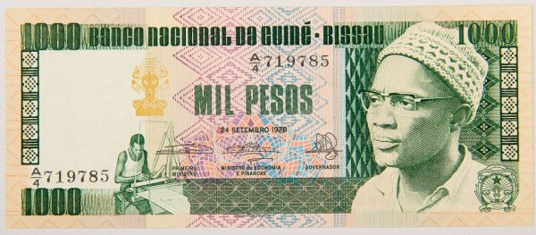 • Numismática, GUINÉ-BISSAU. Uma Cédula P-8 1000 Pesos 1978 Flor de Estampa