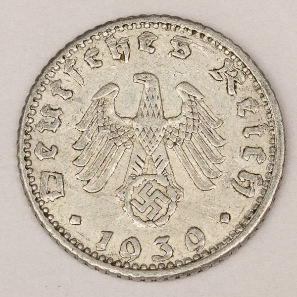 • Numismática Alemanha Período Nazista 50 Reichspfennig Raro no estado oferecido devido a fragilidade do alumínio. **Item não promove ou glorifica violência ou intolerância racial. Está à venda apenas para fins de preservação da memória histórica. A Organização do leilão não faz apologia a quaisquer movimentos políticos ou ideológicos, e repudia qualquer ideologia de cunho racista.1939 A